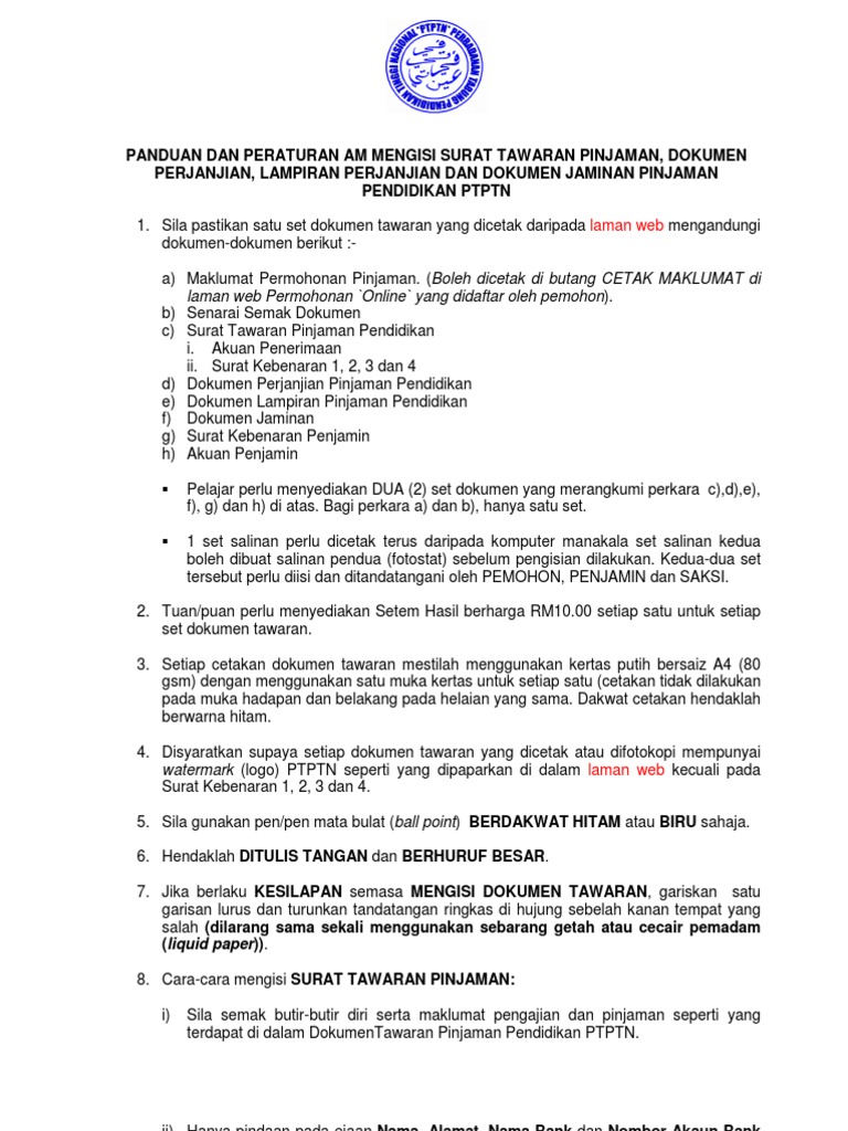 Panduan Pengisian Dokumen Perjanjian Ptptn